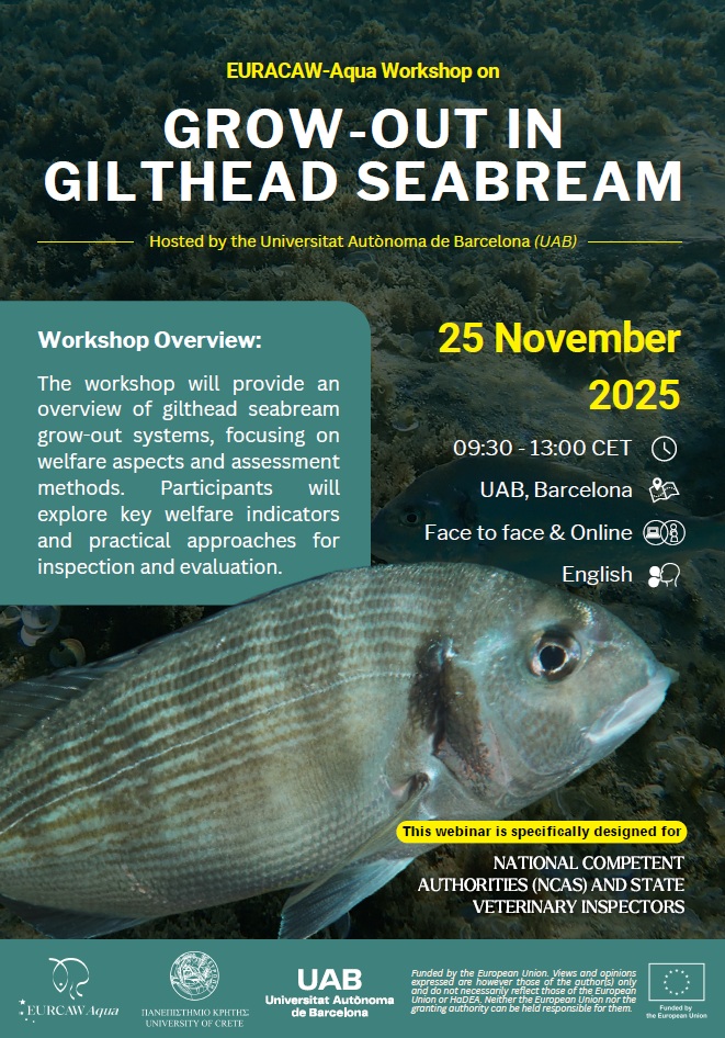 Register here: EURCAW-AQUA Workshop on Grow-Out in Gilthead Seabream
